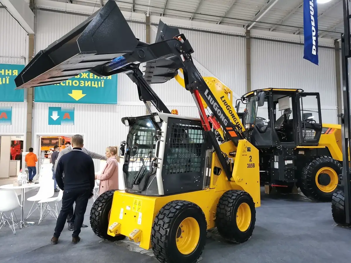 У павільйоні компанія демонструвала екскаватор-навантажувач MST M642 вантажопідйомністю 3500 кг і двигуном Perkins (100 к.с.) і пневмоколісний каток XCMG XP163S, а також мінінавантажувач Sunward SWL3220.
