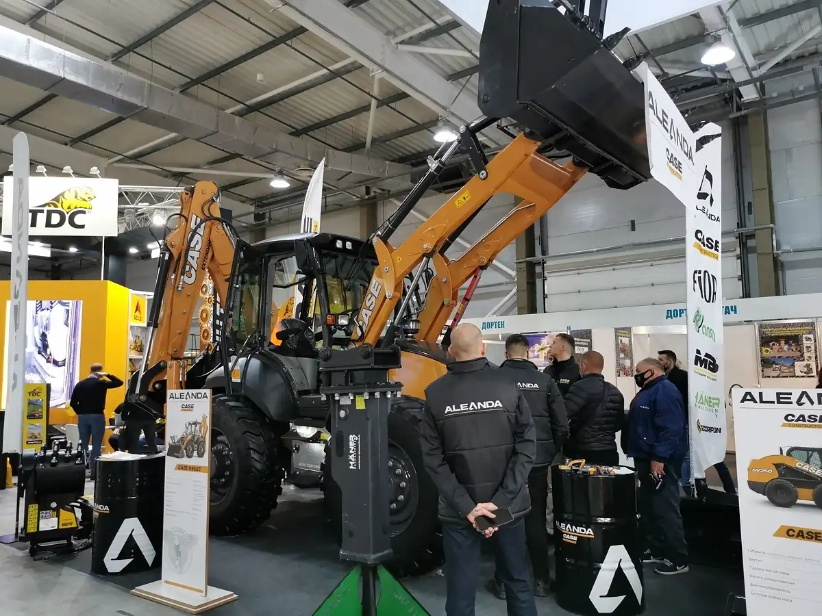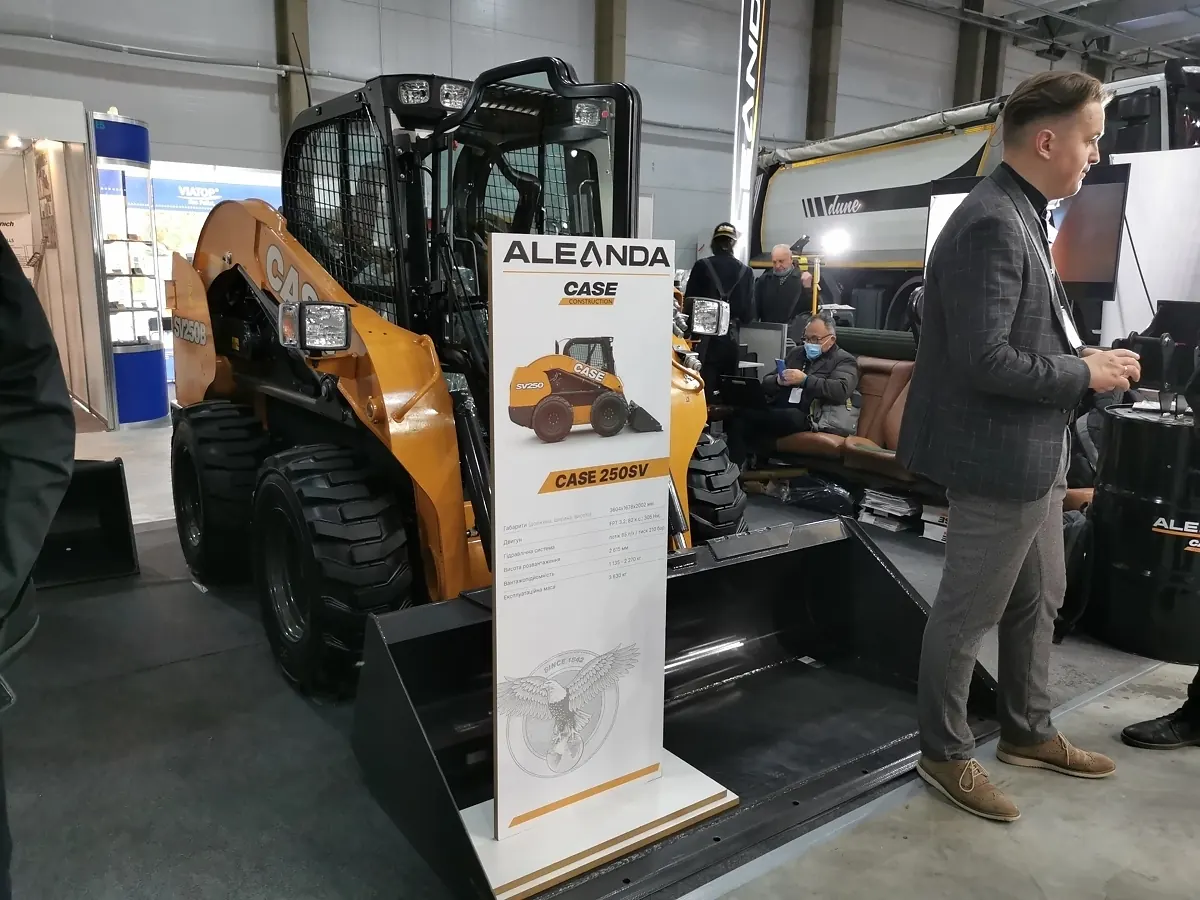 А ось ексклюзивний дилер САЅЕ — компанія ALEANDA приїхала на виставку з екскаватором-навантажувачем CASE 695ST вантажопідйомністю 3572 кг, переднім ковшем на 1,1 м куб і двигуном FPT в 4,5 л, 110 к. с.