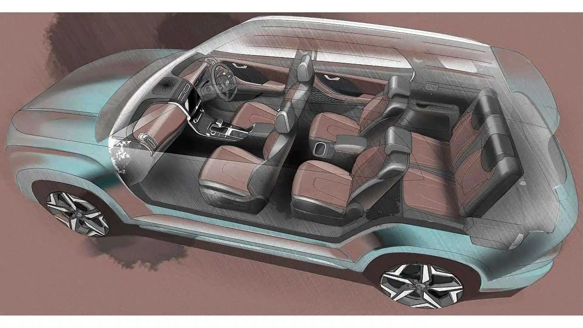 У салоні Hyundai Alcazar також очікується мультимедіа з 10,25-дюймовим дисплеєм і цифрова панель приладів. Сюди ж можна віднести клімат-контроль і бездротовий зарядний пристрій для смартфона. Утім, майже все це є на ескізі.