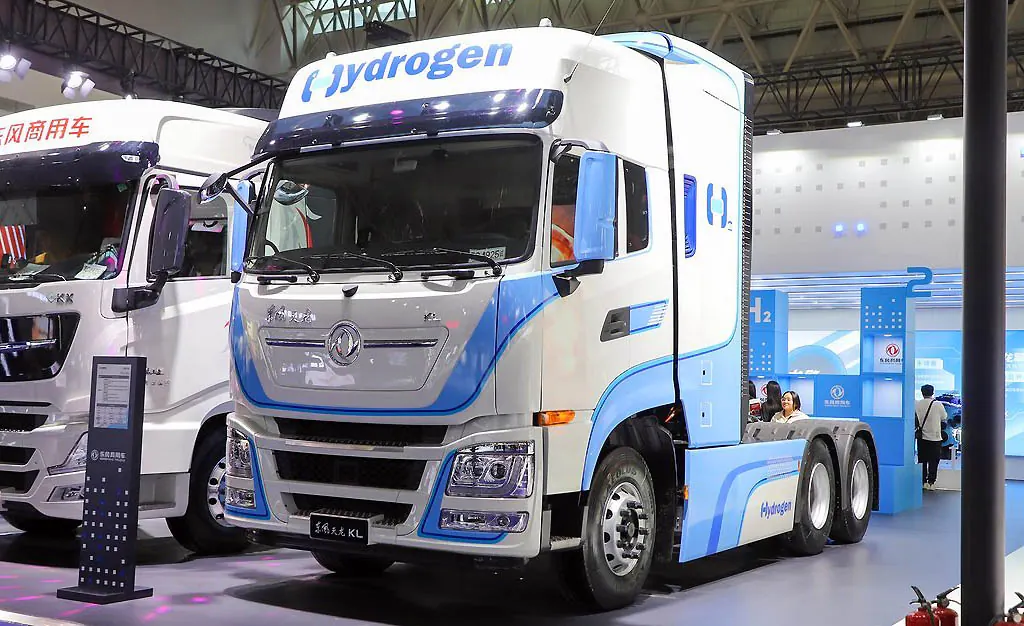 Свій водневий сідловий тягач показав й інший відомий китайський виробник - Dongfeng. Модель Tianlong KL FCEV колісної формули 6х4 побудована на платформі Dongfeng D320e. Установка Fuel Cell потужністю 260 кВт живить два електромотори з постійною потужністю 270 кВт та піковою 410 кВт. Є й літій-іонні батареї.