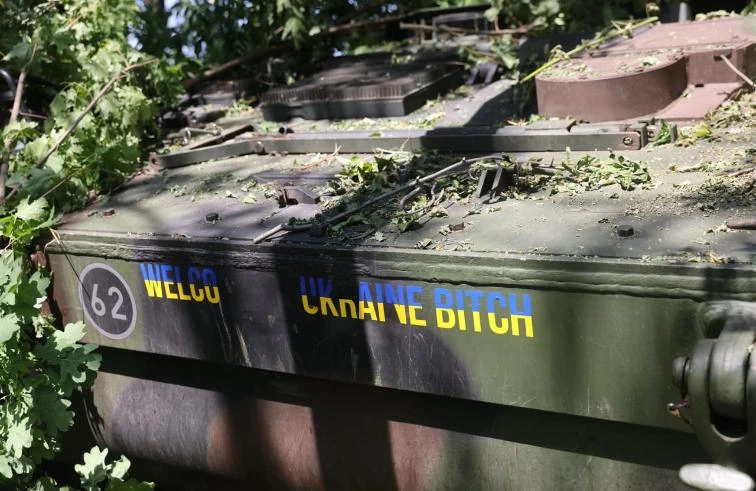 На знімках видно, що новітні німецькі САУ замасковані рослинністю, щоб їх було складніше ідентифікувати ворогові. При цьому напис у національних кольорах "Ласкаво просимо в Україну, суки!" прикривати листям не стали, зазначає видання Bild.