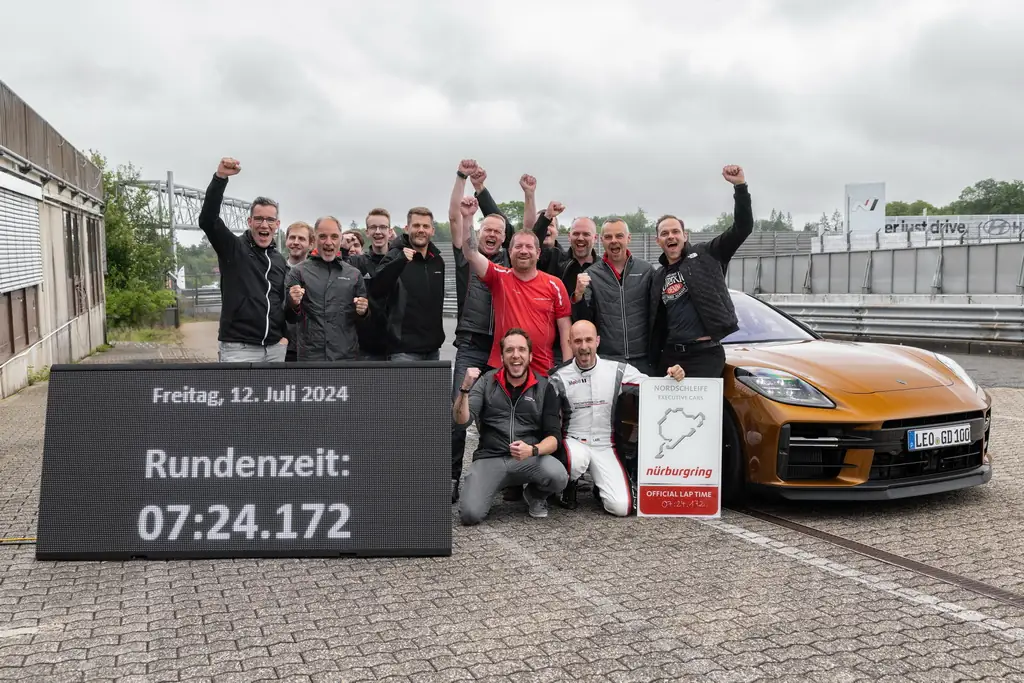 Рекордний заїзд було проведено у п'ятницю, 12 липня 2024 року. Це третій рекорд швидкості для Panamera. Колишні рекорди були встановлені у 2016 та 2020 роках також Лансом Керном. За словами останнього, новинка суттєво покращила свої показники завдяки новій активній підвісці Porsche Active Ride, яка забезпечує машині керованість на рівні спорткара. Також він зазначив, що покращення показників стало можливим завдяки різних факторів, включаючи потужність, аеродинаміку, налаштування шасі та нові шини. Нагадаємо, що колишні рекорди у класі належали чотиридверному Mercedes-AMG GT 63 S 4Matic+ (7:27.800) та Tesla Model S Plaid (7:25.231).
