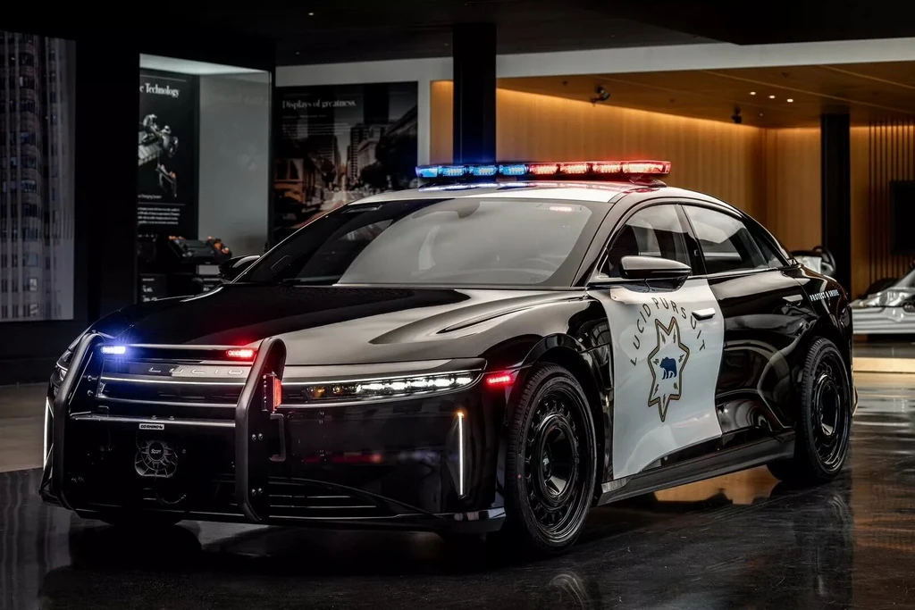 Lucid Pursuit отримав характерну для поліції штату двоколірну ліврею з ведмедем – символом Каліфорнії, світлову та звукову сигналізацію, а також потужні бампери із силовими елементами, а також сталеві чорні диски. За словами виробника, новинка пропонує «неперевершене поєднання» запасу ходу, продуктивності та простору, що зробить його ідеальним для роботи у правоохоронних органах.
