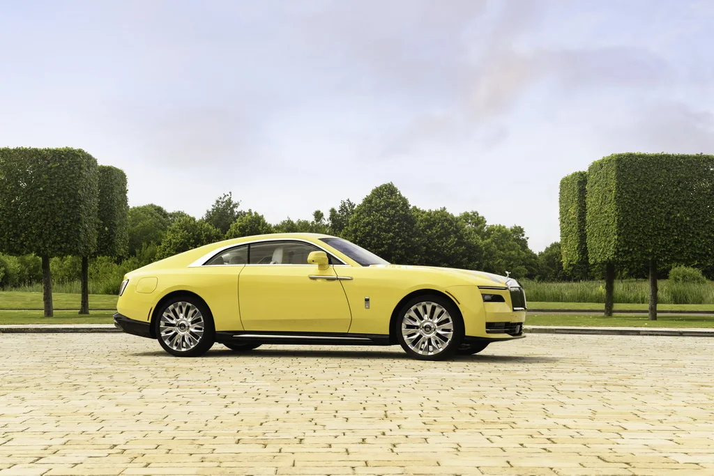Яскраво-жовта гамма кольорів використовується і в інтер'єрі автомобіля. Поєднання Bespoke Lemon Yellow та Citrine Yellow використовується для обробки сидінь, дверей та приладової панелі. Вона поєднується з контрастними відтінками Grace White та Slate Grey з декоративним рядком Lemon Yellow. Дизайнери марки також використали цифровий потенціал Bespoke, доповнивши циферблати жовтими шкалами. Дерев'яні декоративні панелі салону пофарбовані фарбою Cashmere Grey зі срібними пластівцями, які створюють яскравий блиск під прямим світлом.