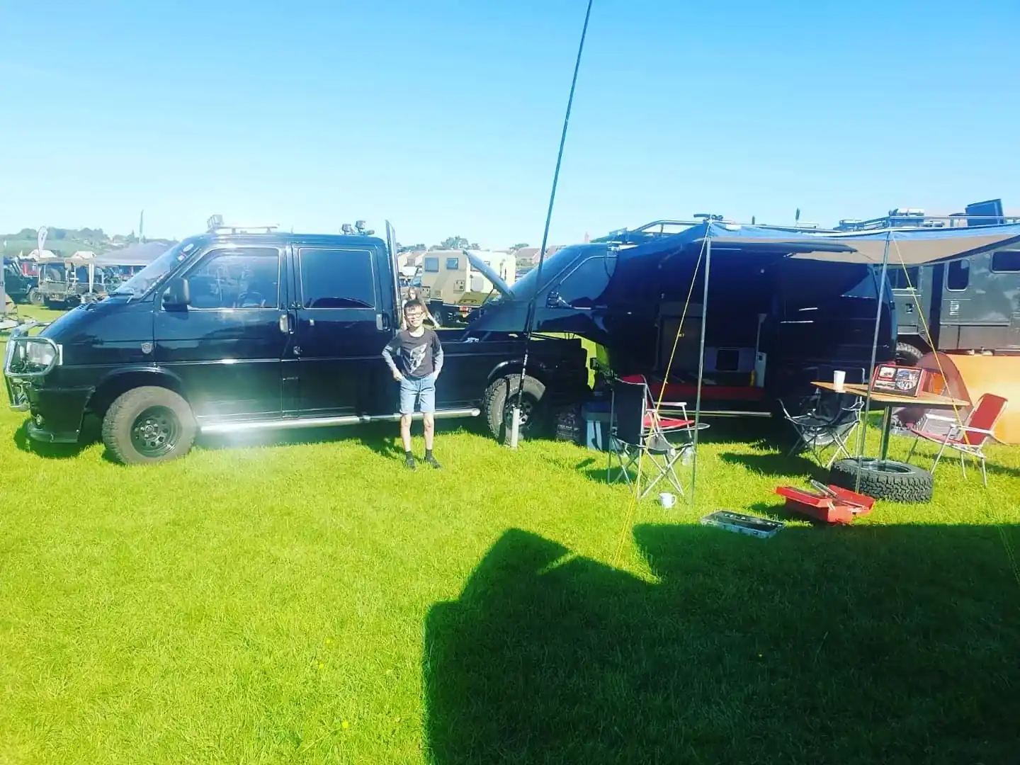 На той момент у Купера вже був Volkswagen T4 Doka, але з проблемним мотором. Ще один розбитий T4 він придбав на запчастини, зокрема, зняв і встановив на свій фургон двигун. Решту переробив у житловий напівпричіп з повністю обладнаною кухнею та чотирма спальними місцями. Ліжко для дорослих перетворюється в обідній куточок, а діти комфортно розташовуються в колишній кабіні. Також у "будинку" є багато ніш для зберігання речей і світлодіодне освітлення, що змінює колір. Колишні зсувні двері Кріс замінив стулковими і вмонтував в них кілька Bluetooth-колонок.