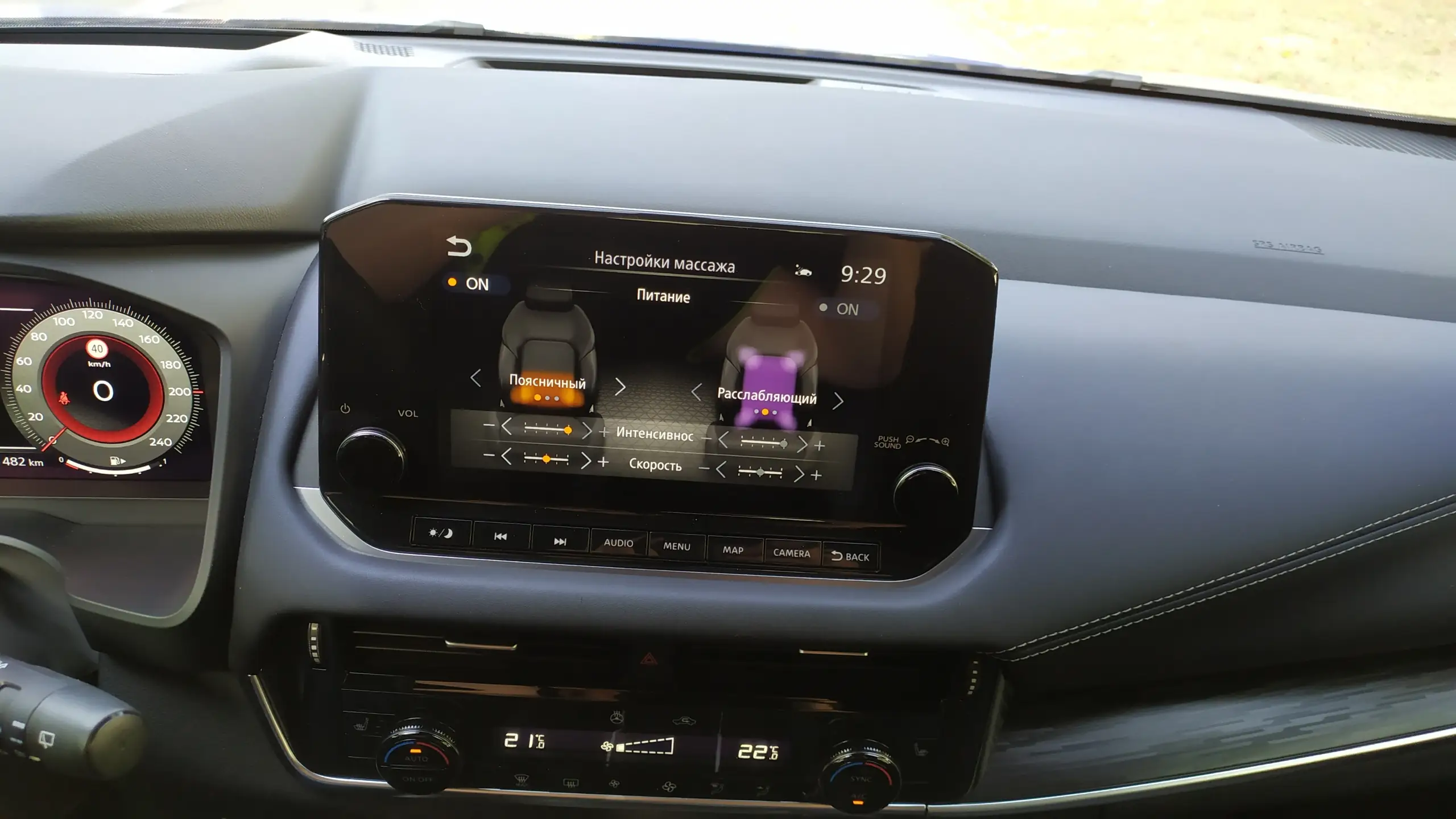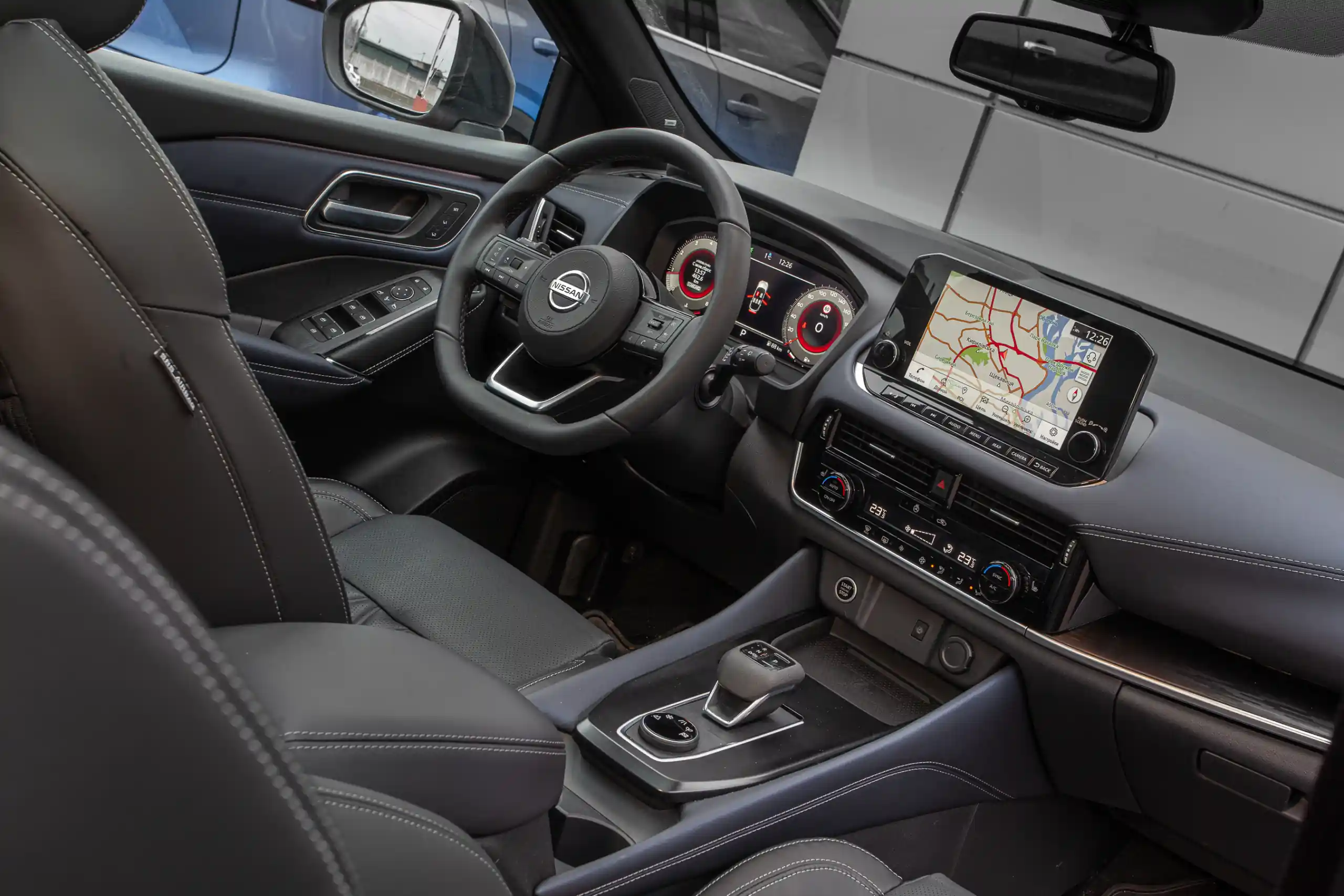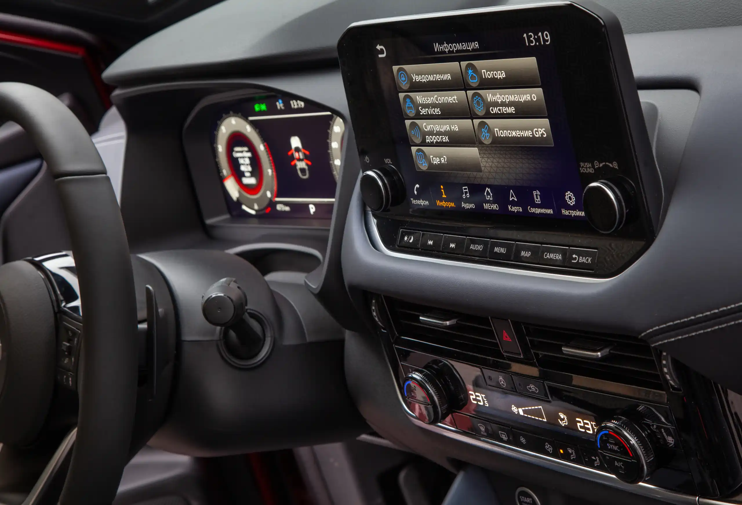 Мені імпонує рішення екрану керування інфорозважальною системою. Великий тачскрін (9 дюймів) зараз сприймається як "маст хев". Проте ніссанівці не кинулися огульно все запихати в сенсорну панель. Дві ручки, що обертаються, і 8 кнопок перемикання гарячих функцій робить управління системою зручним з мінімальним відволіканням уваги. Та сама історія і з керуванням кліматичною системою. Просто, зручно, зрозуміло.