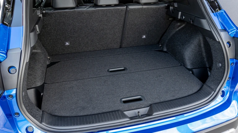 Об'єм багажного відділення у базовій передньопривідній моделі становить 504 л. У нашій машині він менший через повний привод і становить 436 л. Плюс є органайзер. Підлога багажника має дві знімні секції, які відкриваю доступ до підпілля з відділеннями для дріб'язку.