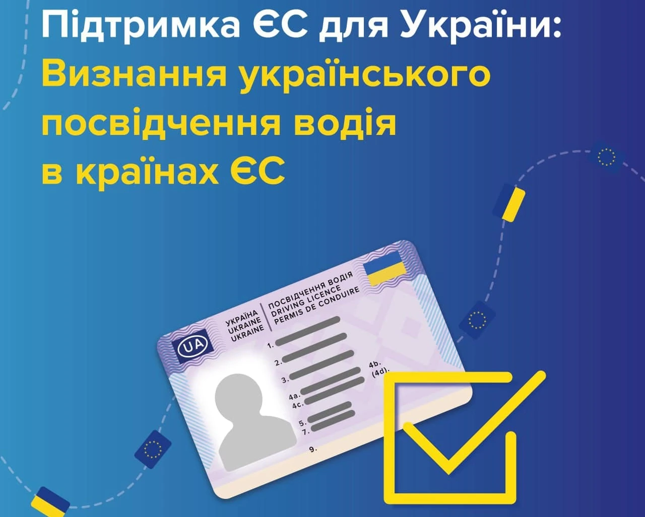 Уряд низки європейських країн, щоб підтримати громадян країни, що захищається від російської агресії, прийняли «Регламент користування українськими національними посвідченнями водіїв у країнах ЄС». Цей документ набув чинності у липні поточного року і діятиме до того моменту, поки ситуація в Україні не стабілізується і громадяни країни зможуть повернутися додому.