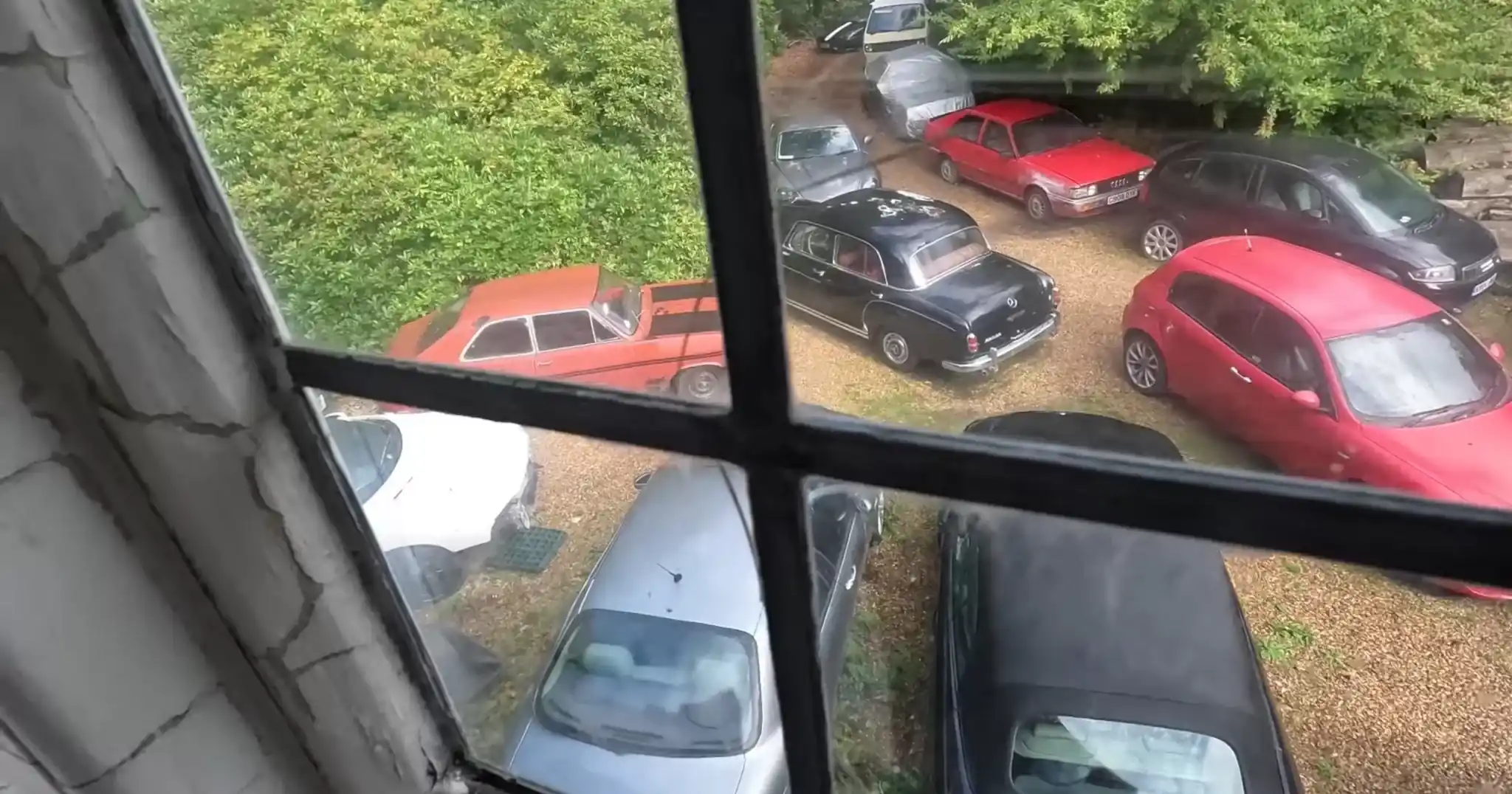 Декілька років тому особняк став жертвою повені і тепер не придатний для життя. У ньому все прогнило від даху до підлоги. Не менш гнітюче виглядає й автоколекція, в якій є такі рідкісні екземпляри, як кабріолети Triumph TR6, Jensen Healey та Jaguar Daimler. Також у відео можна побачити кілька Mercedes-Benz, Honda Civic першого покоління та навіть корпус від Opel GT.