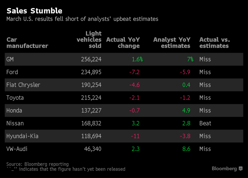 У США відзначено суттєве падіння попиту на нові автомобілі. Більшість лідерів американського авторинку в березні не змогли досягти прогнозованих показників, передає агентство Bloomberg.