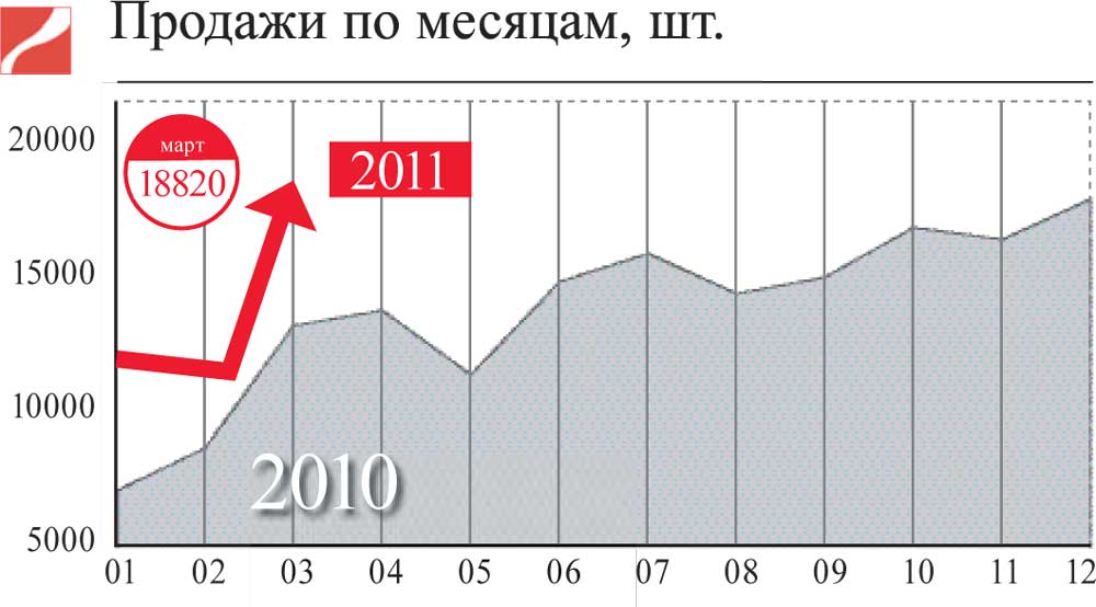 В течение 2009–2010 годов объем рынка составлял 162 тысячи новых машин, а в 2011-м он вырос на 35% – до 220 тысяч. Такой показатель позволил Украине переместиться в рейтинге автомобильных рынков Европы с 15-го на 13-е место. Более того, мы продемонстрировали одну из самых существенных в Старом Свете динамику продаж – выше только у России и ряда стран с небольшим объемом рынка, на которых кризис отразился сильнее всего. Рекордным для нашей страны было 7-е место в этом рейтинге, когда украинцы в 2008-м купили 623 тысячи авто.