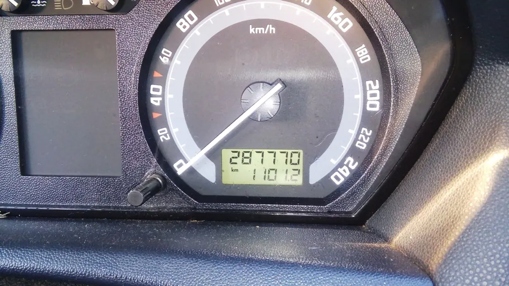 Через автомобіль стоїть Skoda Fabia Combi. Її продавець – молодий молдаванин років 25. Він мені дозволяє сфотографувати не тільки машину, а й усі документи. Ця машина одна з найсвіжіших на ринку – 2004 року випуску, але і їй дісталося за життя чимало. Під капотом – 1,9-літровий дизель, пробіг – 287 770 км. Теж, мабуть, не встигли скрутити спідометр.