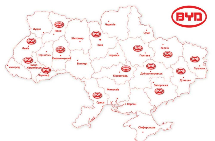 На ближайшее время руководство импортера BYD в Украине ставит перед собой три главные цели: довести число дилерских центров до тридцати уже в 2012 году, обеспечить клиентов качественным обслуживанием, а также начать продажи электромобилей BYD e6. Отметим, что уже сейчас BYD работает с 23 дилерами в пятнадцати городах Украины.