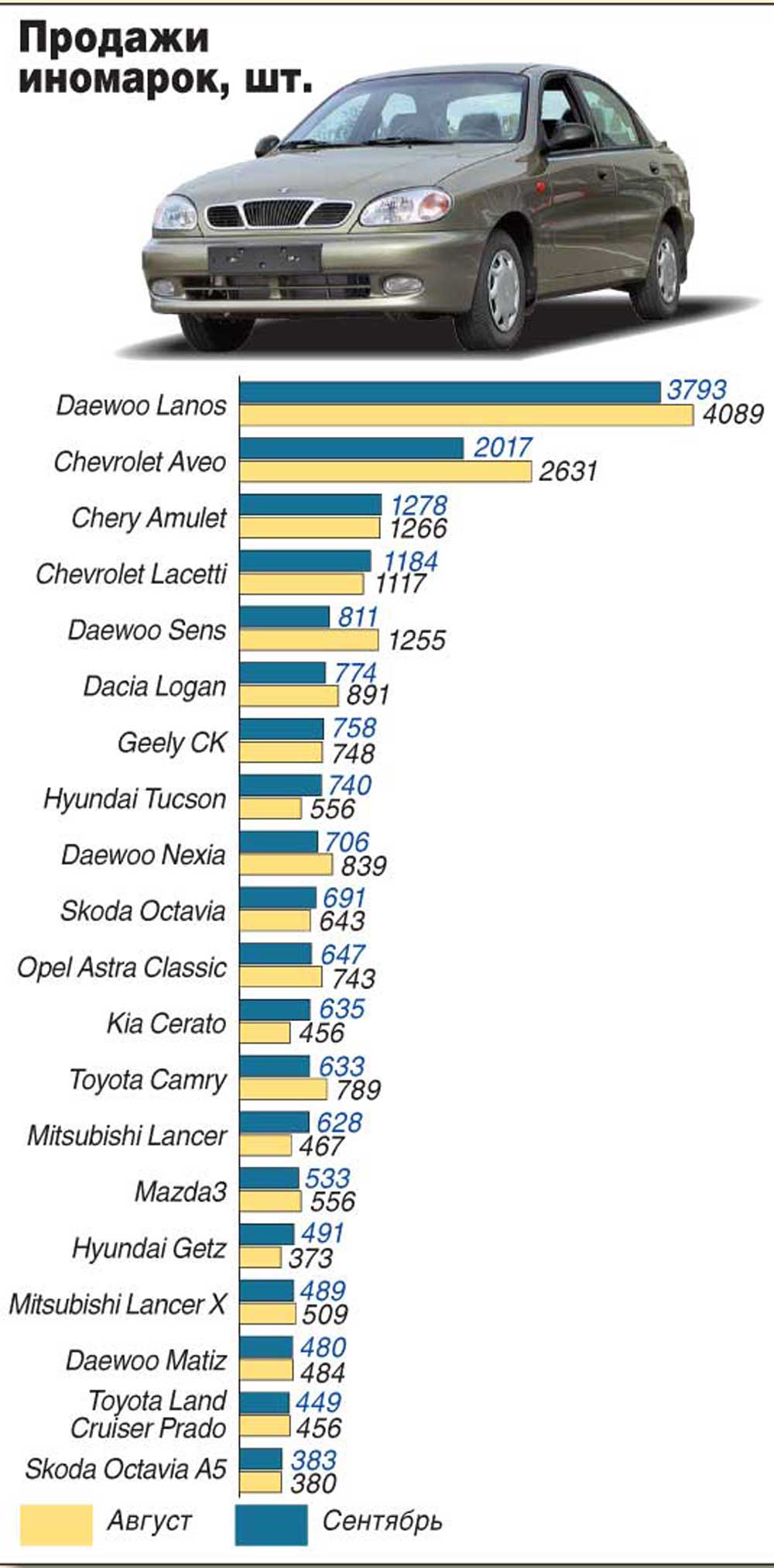 В сентябре курс евро к гривне вырос от 6,8 до 7,1 грн./евро. Такой скачок сразу же сказался на ценах автомобилей, номинированных в евро. И почти тотчас же – на их продажах. Выбирая между изрядно подорожавшим «европейцем» и машиной, цена которой закреплена в гривнях или долларах, покупатель отдавал предпочтение второму варианту. Поэтому сентябрьские продажи Toyota, Ford, Dacia и др. несколько снизились. Впрочем, Skoda, тоже оценивающихся в евро, реализовано ненамного меньше, чем в августе. Некоторые продавцы европейских машин сориентировались в ситуации и на своих ценниках «заморозили» взлетевший курс в гривнях. Но у конкурентов начался настоящий праздник – в автосалонах Hyundai, Kia и некоторых «китайцев» было не протолкнуться. Впрочем, продажи увеличились только у тех, кто успел завезти достаточное количество авто. Например, неплохо «пошла» «вазовская» Priora. Зато на некоторые популярные модели Daewoo, Chery, Geely, Mitsubishi, Nissan и другие опять образовался дефицит. Хотя общая тенденция второго полугодия в сентябре сохранилась – авторынок опять переживает бум, причем без внешних причин (угроза повышения пошлин и т. д.). За сентябрь реализовано около 50 тысяч новых легковушек, что на 52% больше, чем за аналогичный период в прошлом году. Впрочем, некоторые эксперты предрекают снижение продаж в конце 2007-го. Причем совсем не по вине автопродавцов. Во-первых, выросший курс евро, длительное время удерживающийся за отметкой в 7 гривен, не даст возможности большинству автоимпортеров и даже украинским производителям долго сдерживать рост цен на машины. Во-вторых, в конце года многие банки обычно исчерпывают свои лимиты по сумме выданных займов и прекращают кредитование на покупку автомобилей. Такая ситуация возможна уже в ноябре, а ведь нынешний автомобильный рынок примерно наполовину состоит из продаж кредитных машин…