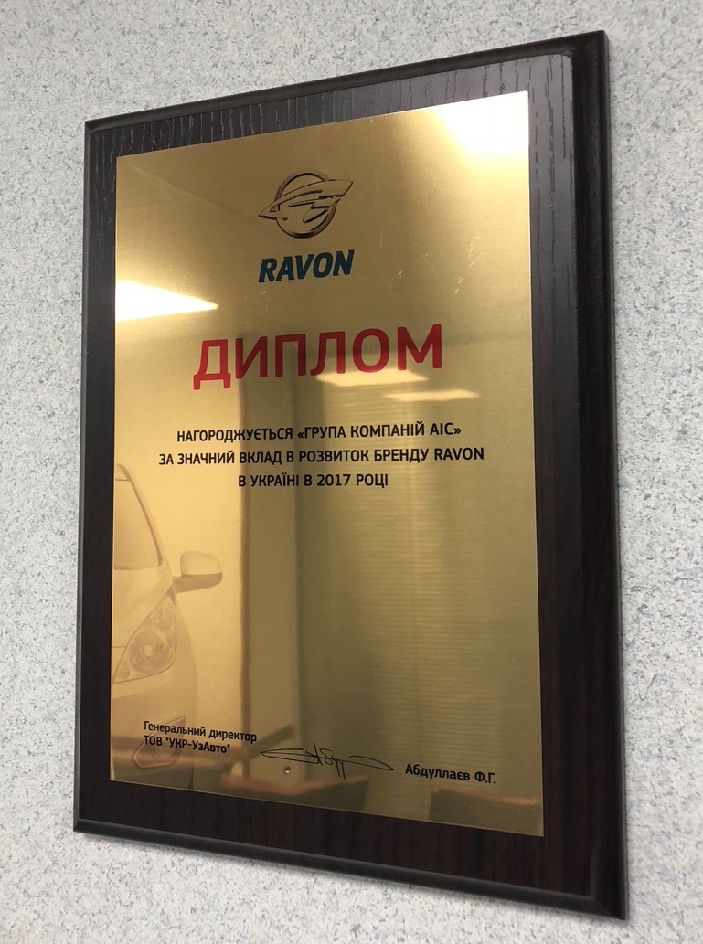 Проведенная работа по развитию дилерской сети, продвижению бренда и продажам была выосок оценена официальным импортером Ravon в Украине компанией Укр-УзАвто. Группа компаний АИС получила награду как лучший дилер в номинации «За существенный вклад в развитие бренда Ravon в Украине». Вторая награда – Автоцентр Ravon АИС Чернигов стал лучшим дилером в северном регионе.