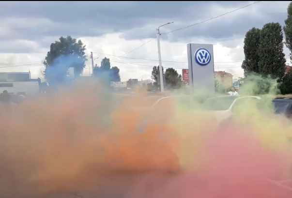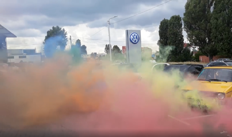 А загалом атмосфера була крута. Димове шоу і різнокольорові кольори кузовів машин наситили похмурий день яскравими фарбами. А спілкування з захопленими людьми створювало дружню і невимушену атмосферу в автосалоні «Порше Захід». Таким ось вийшов R-Line days.