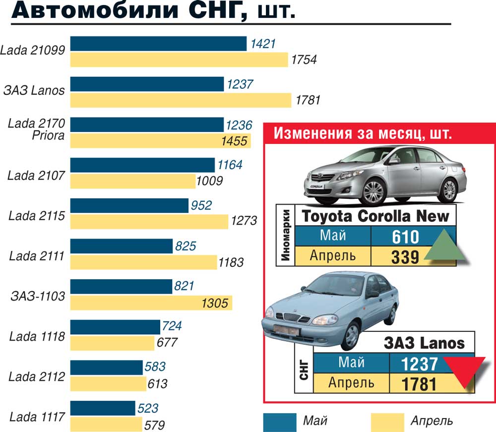 Впрочем, реализации уменьшились только по сравнению с апрелем и мартом 2008 года. Если в эти месяцы продавалось около 61 и 55 тыс. легковушек cоответственно, то в мае – только 50 тыс. Но это на 18,5% больше, чем в мае 2007-го. Что же стало причиной «осечки» рынка? Все вполне прозаично. Во-первых, рабочих дней, когда можно было купить и зарегистрировать новую машину, в мае было немного (большое количество праздников и выходных дней). Во-вторых, многие ждали снижения пошлин после вступления Украины в ВТО, а значит, и удешевления иномарок — поэтому покупку отложили до лучших времен. В-третьих, в банках стало сложнее получить кредит на приобретение авто, да и ставки по займам увеличились. По расчетам аналитиков корпорации «АИС», из-за проблем с кредитами в мае не стали покупателями примерно две тысячи украинцев, из-за вступления в ВТО – еще две тысячи. А еще тысяча наших соотечественников отложили покупку по причинам подорожания топлива, падения курса доллара и т. д. Аналитики ИАГ «AutoConsulting» говорят о еще большей «недостаче» продаж — в 12 тысяч автомобилей по тем же причинам. На фоне общего снижения динамики продаж произошел ряд изменений в рейтинге марок и моделей. Так, больше всего пострадали бюджетные марки, покупатели которых сильно зависят от кредитов, – ЗАЗ, Chery, Daewoo. Во многом падение продаж Volkswagen обусловлено сменой импортера и как следствие – недостаточно активными маркетинговыми шагами нового участника рынка. В то же время у Hyundai и Kia реализации уменьшились не так значительно, как у конкурентов, за счет чего они поднялись в майском рейтинге продаж. Также сумели нарастить свою долю рынка Skoda, Toyota, Honda. Например, за счет выгодной ценовой политики Honda Civic и Toyota Corolla впервые вошли в первую двадцатку наиболее продаваемых иномарок. Впрочем, массовые акции автоимпортеров по снижению цен или переведению их в гривни начались только в конце мая. Так что в ближайшее время следует ожидать еще большего перераспределения позиций на рынке.