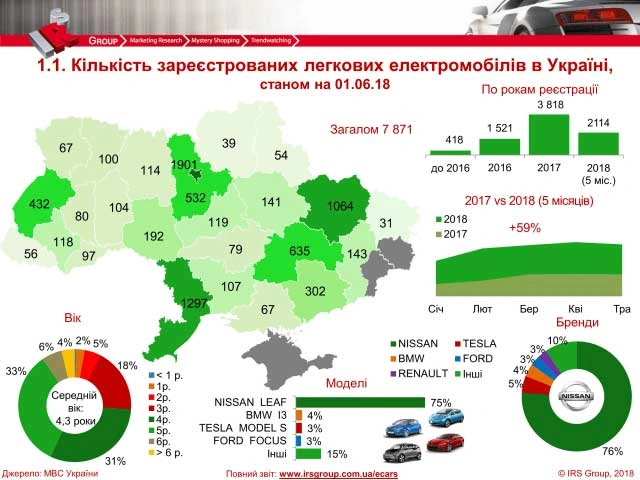 Маркетинговая компания IRS Group проанализировала статистику продаж электромобилей за последний месяц весны. В мае на украинском рынке было зарегистрировано 432 электрокара.