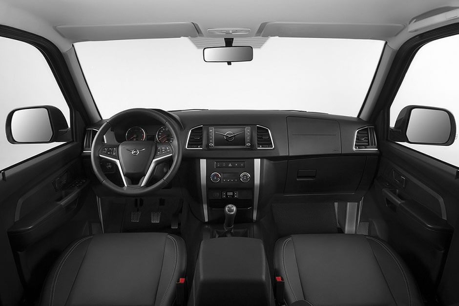 Крепкая рамная конструкция обеспечивает надежность в условиях самого тяжелого бездорожья. Жестко подключаемый полный привод осуществляется с помощью надежной раздаточной коробки Dymos. К этим преимуществам добавляется блокировка дифференциала заднего моста с электронным управлением.