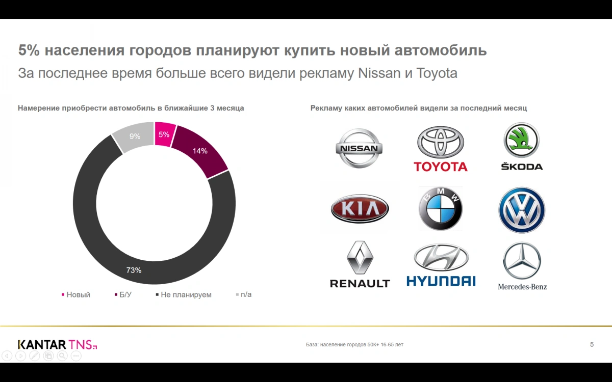 А еще специально для нас в TNS Украина провели опрос населения с целью выяснить, сколько людей собираются купить новый автомобиль в ближайшее время – буквально в ближайшие три месяца, то есть это уже показатель обдуманной и фактически назначенной покупки. Оказалось, что 5% жителей крупных городов (больше 100 тыс. жителей) уже готовы к покупке. Это огромная цифра, и если бы все они действительно купили автомобили, рынок уже в 2019 году составил бы 300-400 тыс новых автомобилей. Увы, этого не произойдет, но вывод очевиден: люди готовы покупать новые машины.