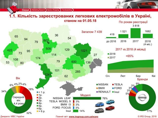 Рынок электромобилей в Украине по маркам на 01.05.2018
