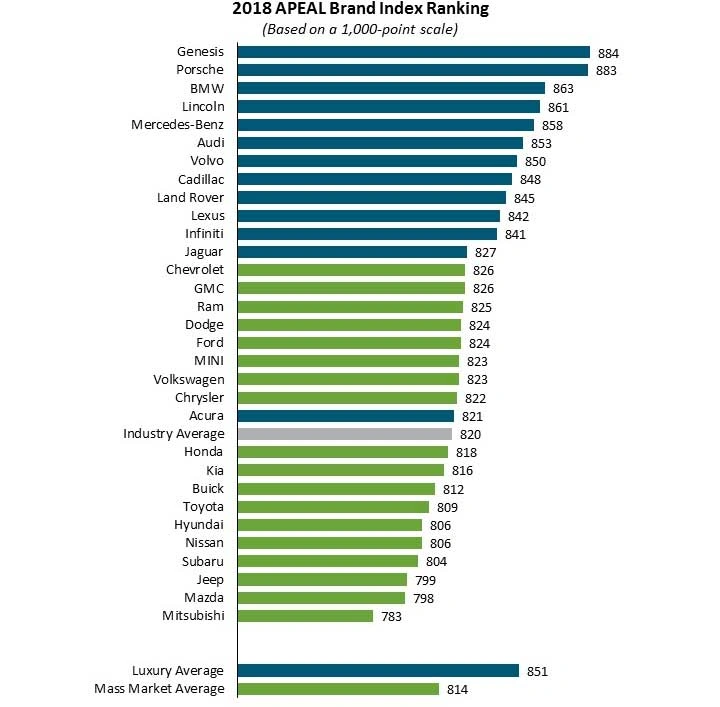 В этом году в рейтинге неожиданно сменился лидер – марка Porsche неожиданно уступила первую позицию молодому корейскому бренду Genesis. Премиум-марка компании Hyundai смогла набрать 884 балла против 883 баллов «штутгартцев».