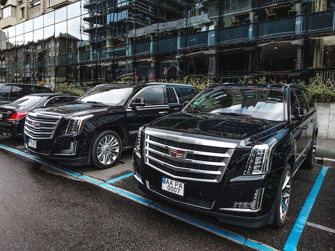 Йдеться про два чорні Cadillac Escalade. Причому це абсолютно нові моделі останнього покоління. Обидві машини на українській реєстрації, тому навряд чи їх використовує заокеанське диппредставництво.