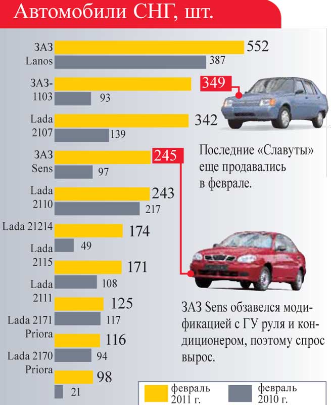 Итоги продаж легковых автомобилей в феврале ниже, чем в первом месяце года – покупатели новых машин немного сбавили темп. Однако по сравнению с 2010-м рост все равно очевиден.