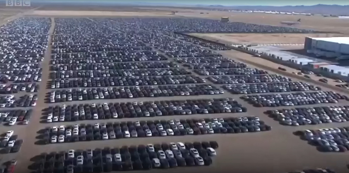На YouTube-канале BBC News появилось видео с грандиозным “временным кладбищем” автомобилей Volkswagen. Ролик, сделанный с высоты птичьего полета, получился впечатляющим.