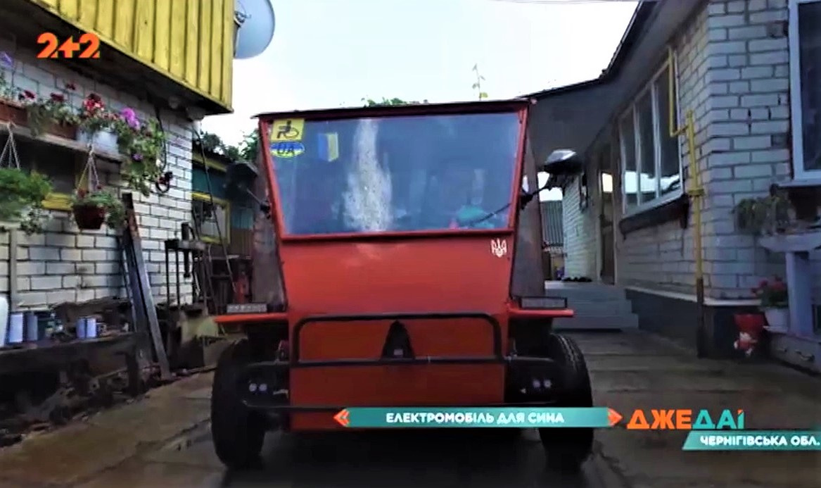 В Чернігівській області Петро Тарасенко сконструював електромобіль для свого сина, хворого на ДЦП. Саме дитина, яка, незважаючи на обмежені фізичні можливості, дає дітям уроки музики і проводить концерти для військових, надихнула винахідника на створення незвичайного транспортного засобу.