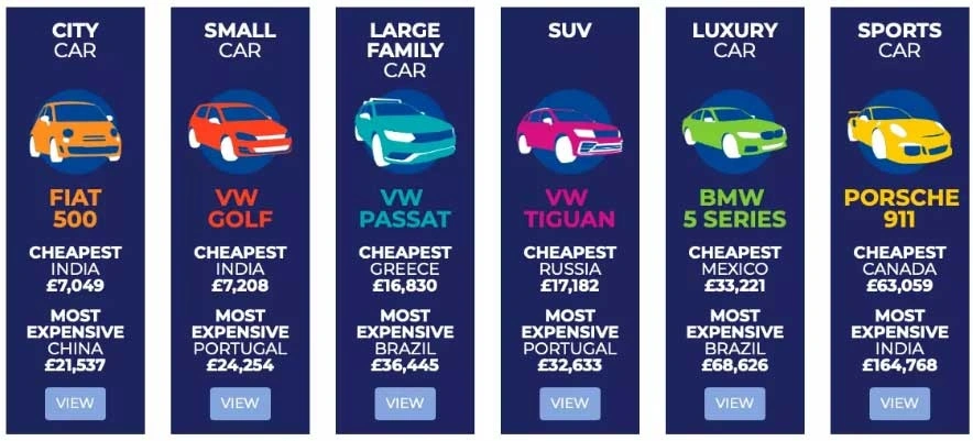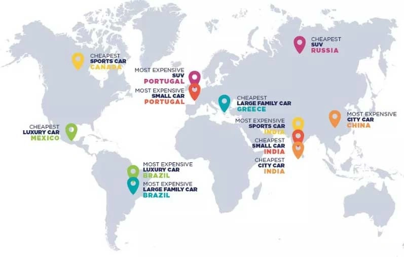 В результате выяснилось, что, например, кроссовер дороже всего обойдется в Португалии, а дешевле всего – в России. Сверхкомпактный ситикар не выгодно покупать в Китае, а вот в Индии в самый раз, но спорткары там, наоборот, самые дорогие в мире.