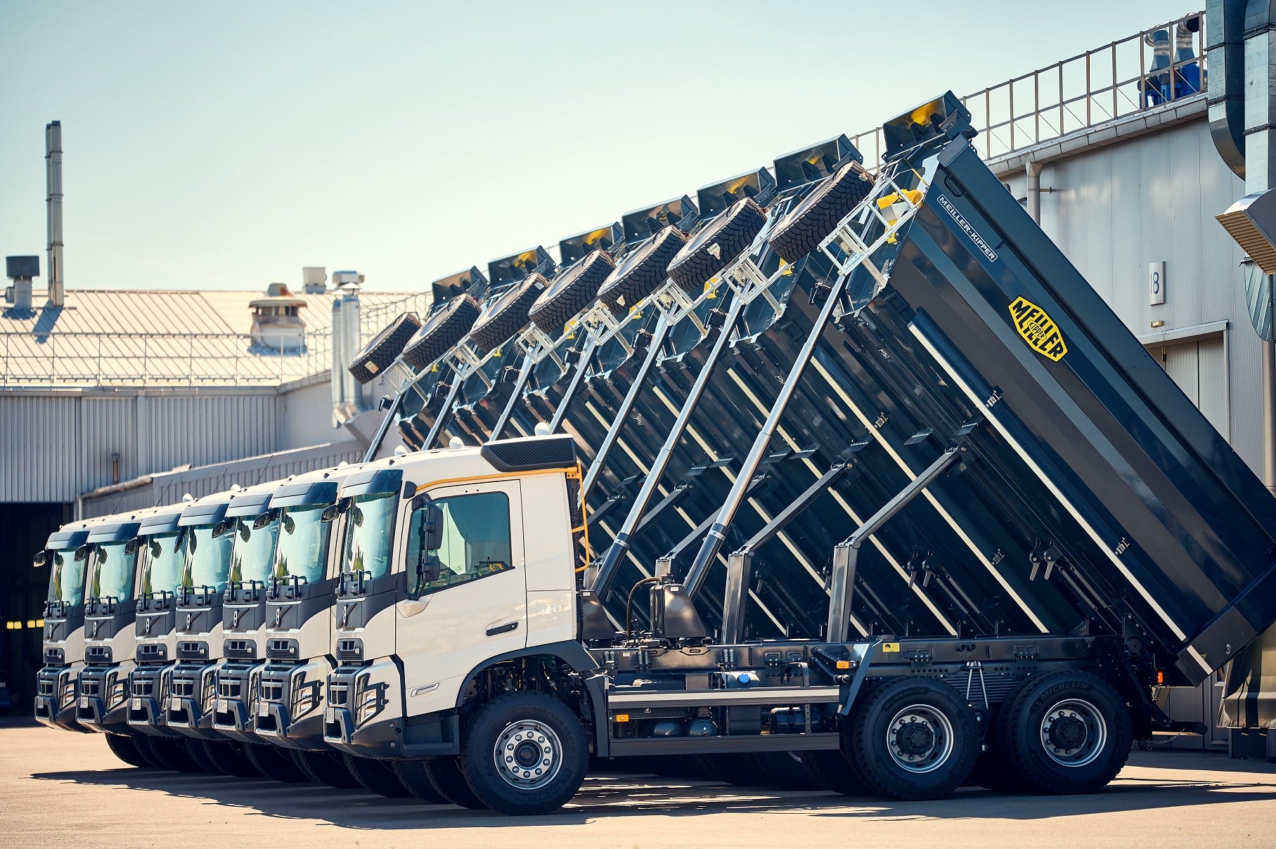 У цьому разі машини поставлені в тривісному виконанні 6х4, оснащені 13-літровими 420-сильними турбодизелями, автоматичними коробками передач і самоскидними кузовами марки Meiller-Kipper. Фінансування на придбання техніки надала компанія “ВФС Україна” (Volvo Financial Services Ukraine).