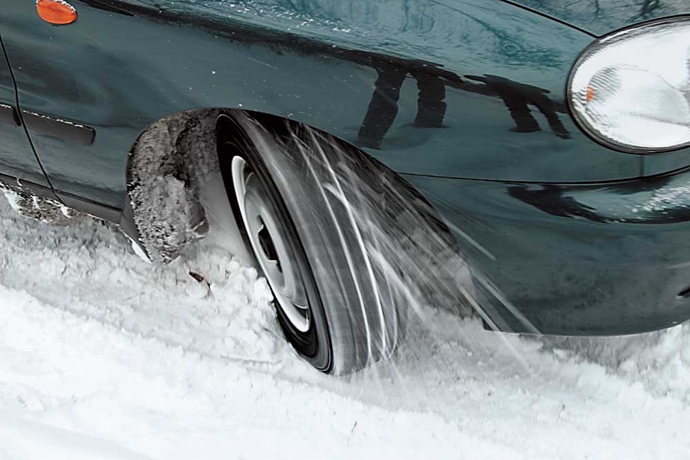 Под слоем снега на шоссе может скрываться лед, а он в сочетании с эффектом слэшпленинга опасен тем, что обеспечивает самый низкий коэффициент сцепления. Чтобы на такой дороге тронуться с места или разогнаться, не следует бояться буксования на высоких оборотах. Это позволит с помощью центробежных сил очистить протектор от налипшего снега.