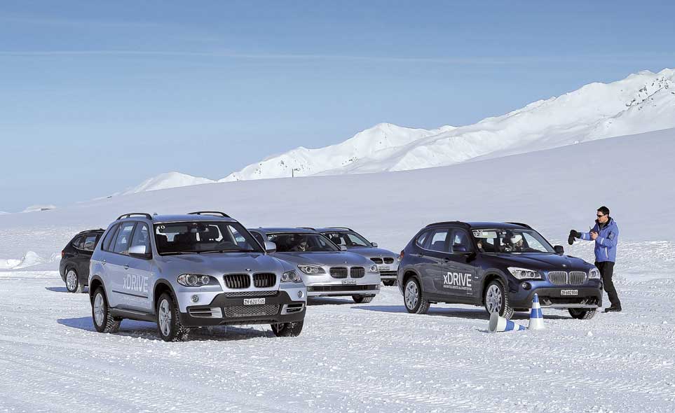Перед нами заснеженная горная дорога Давоса и целый день, чтобы проверить все преимущества привода xDrive, испытать работу системы стабилизации в разных режимах и сравнить все это на разных моделях BMW. Начали с BMW X5 и X6. Эти машины тяжелые и мощные, но удивительно проворные и целеустремленные. Даже на европейских зимних шинах (много продольных канавок, мало ламелей и никаких шипов) они карабкаются по склонам и держат траекторию. За их рулем чувствуешь, что обязательно доберешься до пункта назначения, даже если придется преодолевать самые крутые склоны. Но чтобы проверить, как ведет себя привод на льду, пересаживаемся в седаны третьей и седьмой серий и X1.