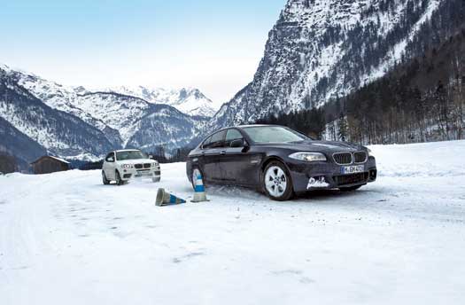 В Австрии мы в очередной раз убедились, что некоторые приемы безопасной езды лучше отработать до состояния мышечной памяти, а поведение машины под воздействием электронных систем изучить в безопасных условиях. Для этого у нас была команда инструкторов, зимний полигон вблизи Заальфельдена и целая линейка самых разных автомобилей BMW, оборудованных системой полного привода xDrive и обутых в зимние нешипованные шины Michelin.