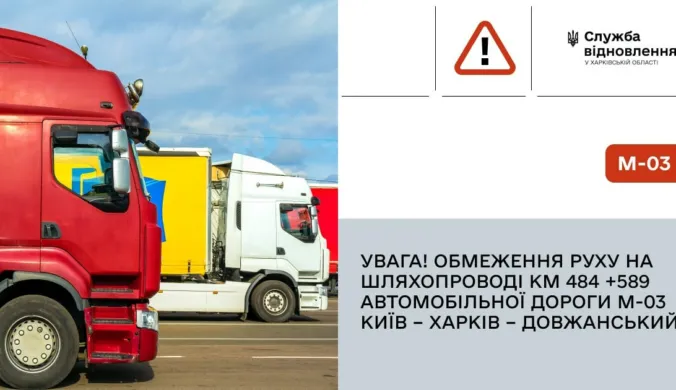 До уваги перевізників: обмежено рух на автодорозі М-03 Київ – Харків – Довжанський