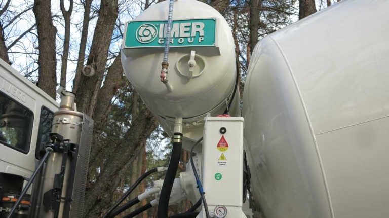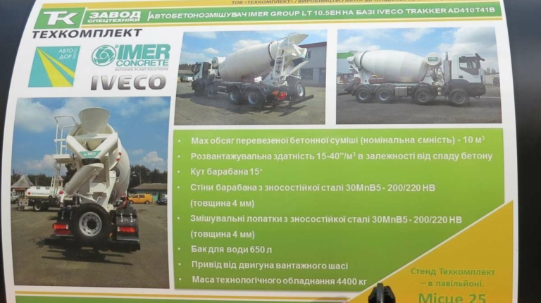 Свой дебют на выставке компания совместила с первым публичным показом бетоносмесителя турецкой марки IMER. Это модель с 10-кубовым барабаном на грузовом шасси IVECO Trakker (8х4), хотя к заказу доступны и другие версии, от 3 до 15 кубов.