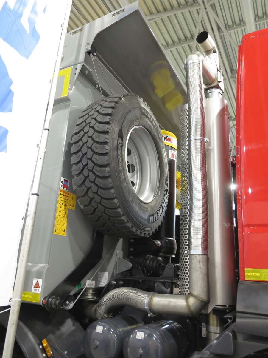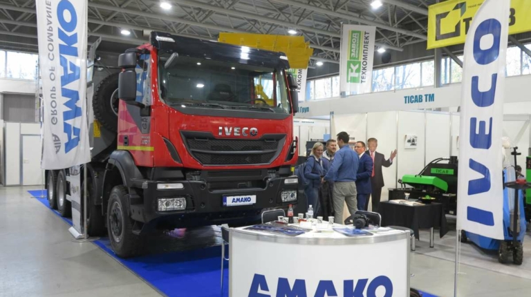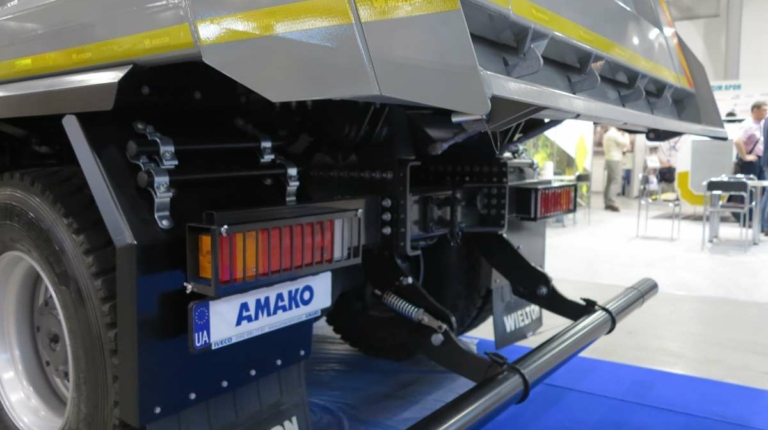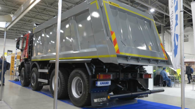 Компания «АМАКО», которая является официальным дилером IVECO в Украине, представила на выставке самосвал IVECO Trakker (8х4). Машина оснащена 18-кубовым кузовом от польского производителя Wielton. Платформа оборудована системой подогрева выпускными газами не только днища, но и бортов.