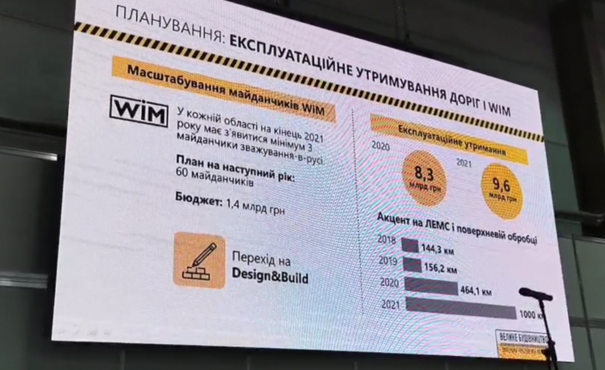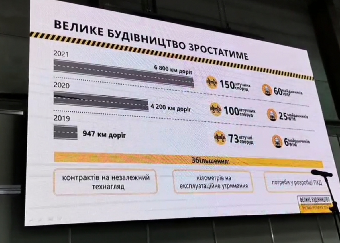 “Поки що рухаємося в межах плану на 2020 рік, який становить 4200 км доріг, 100 штучних споруд і 25 майданчиків WIM (габаритно-вагових комплексів, що працюють в автоматичному режимі). Для порівняння, в 2019 році було тільки 947 км. На наступний рік ставимо завдання 6800 км.