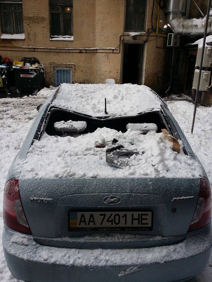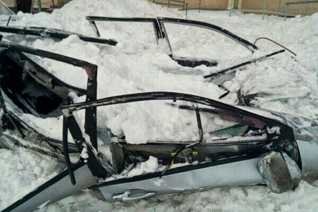 Чому не варто паркувати авто під будинками здогадатися неважко. Адже в будь-який момент з даху може впасти сніг, завдавши серйозних пошкоджень автомобілю. Причому іноді «сніговий удар» здатний розчавити автомобіль!