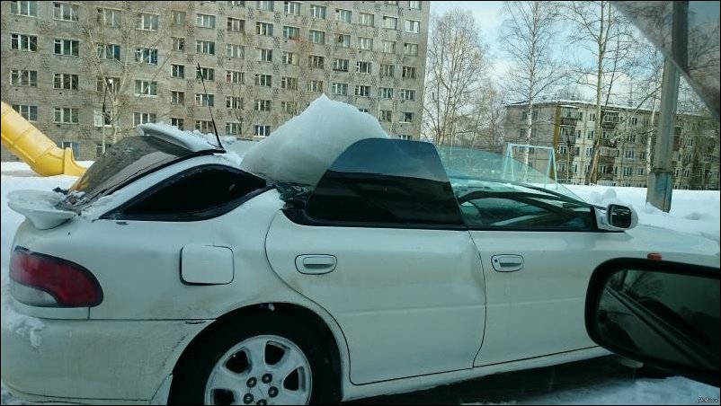 Висновок: під час паркування взимку потрібно не тільки залишати машину так, щоб не заважати комунальним службам у прибиранні снігу, але і ставити автомобіль подалі від будівель та дерев. Також нагадаємо, що ходити під будинками взимку теж вкрай небажано.