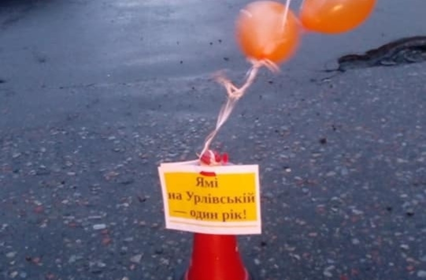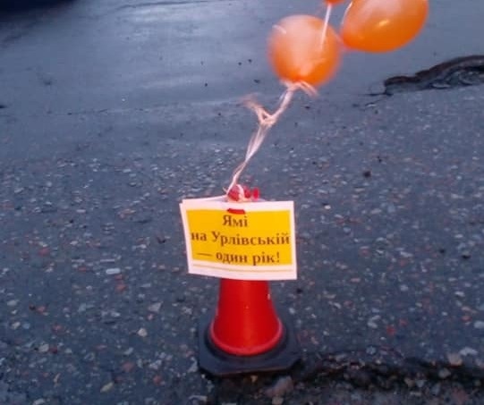 Поводом к празднованию стала годовщина ямы на дороге. Как вы видите на фото, опубликованных в сообществе Газета Дарницькі Вісті в Фейсбуке, ко Дню Рождения выбоину украсили дорожным конусом, соответствующей табличкой и воздушными шариками.
