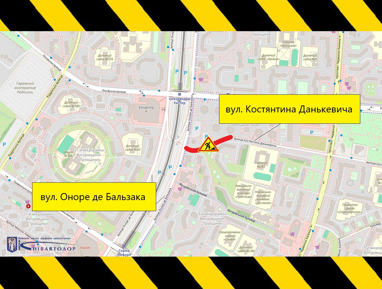 У Києві обмежать рух на вул. Костянтина Данькевича в Деснянському районі