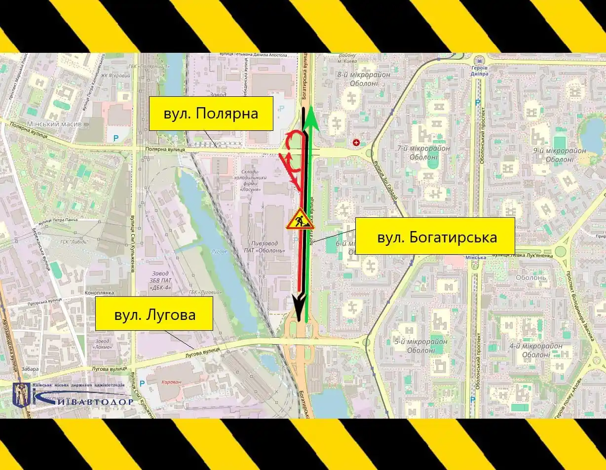 Із 22 травня до 19 червня частково обмежуватимуть рух транспорту вулицею Богатирською у напрямку проспекту Степана Бандери. Обмеження пов’язані з продовженням капітального ремонту вулиці. Про це повідомляють у КК «Київавтодор».