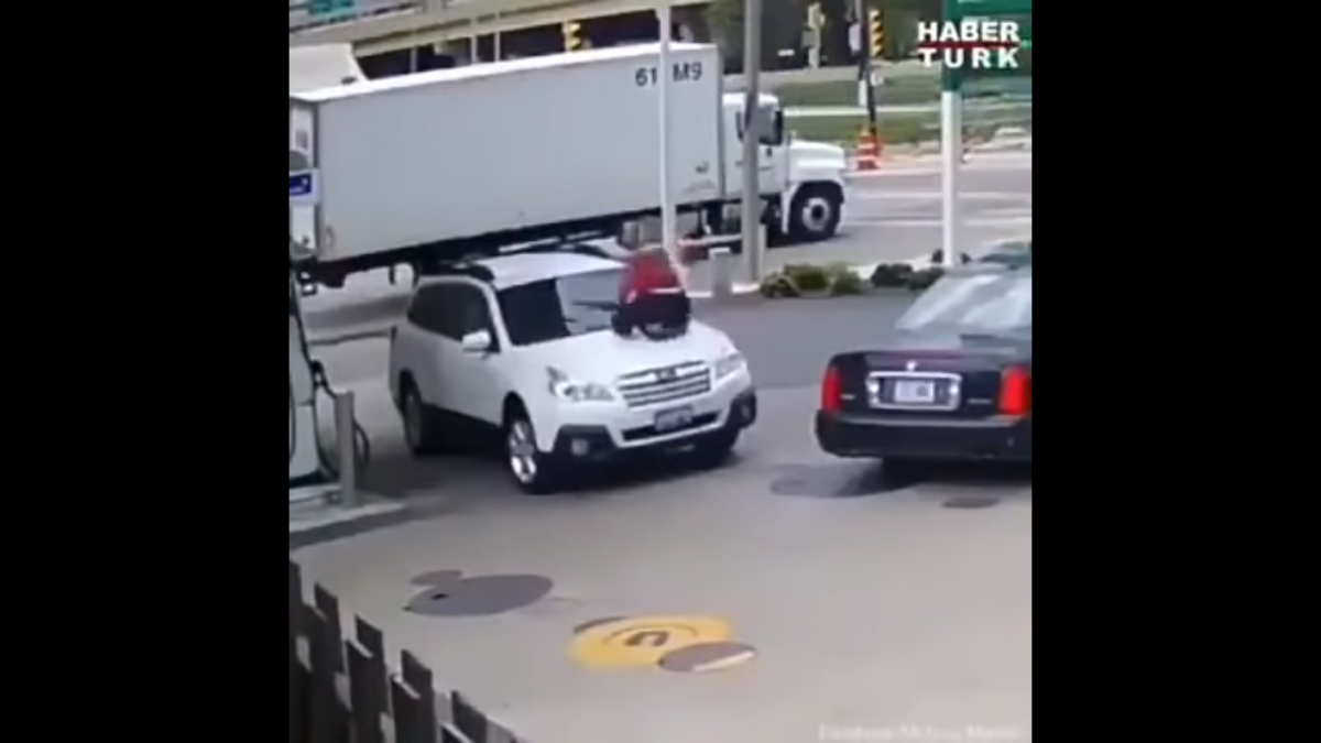 Данный момент, как и в первом случае, был зафиксирован на камеру наружного наблюдения, установленную на заправке. Как это было, смотрите сами: