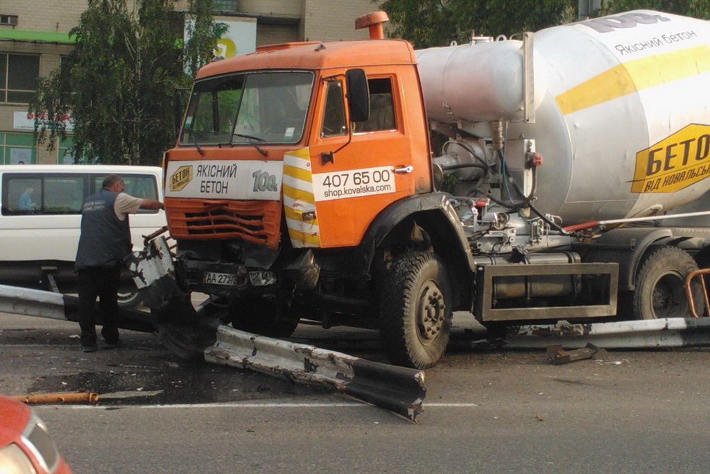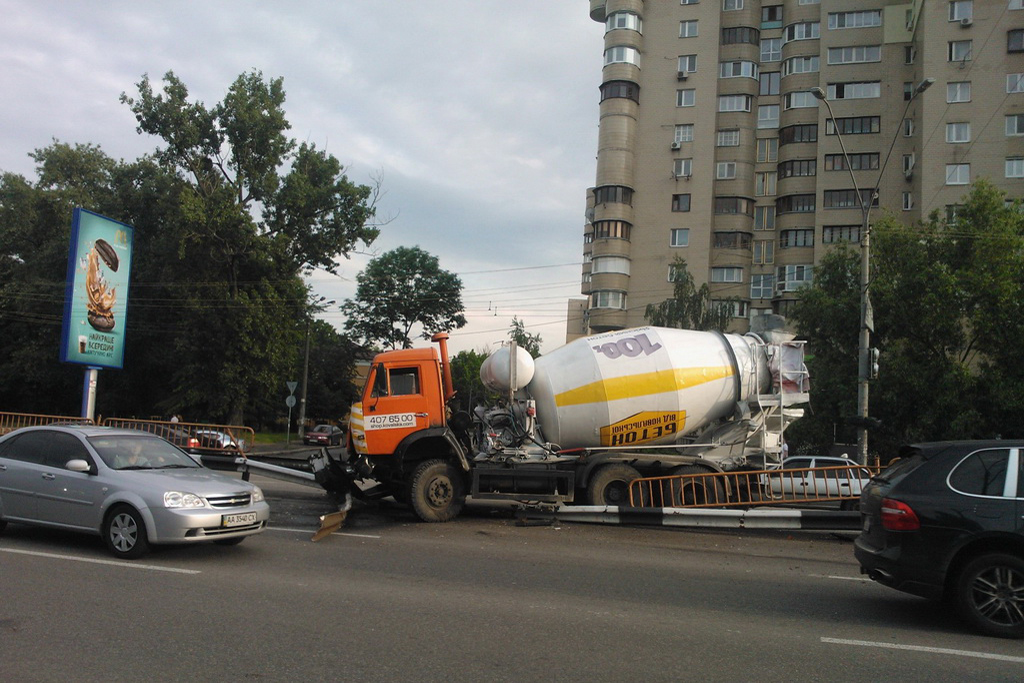 У другій половині дня 25 травня навантажений бетоновоз на шасі КамАЗу, що їхав зі сторони Шулявки в бік центру, з незрозумілої поки що причини змістився вліво і протаранив огорожу. Чималу масу машини не зміг зупинити навіть потужний сталевий відбійний брус, який вантажівка проламала. КамАЗ частково опинився на зустрічній смузі, де в цей момент проїжджав Peugeot 206.