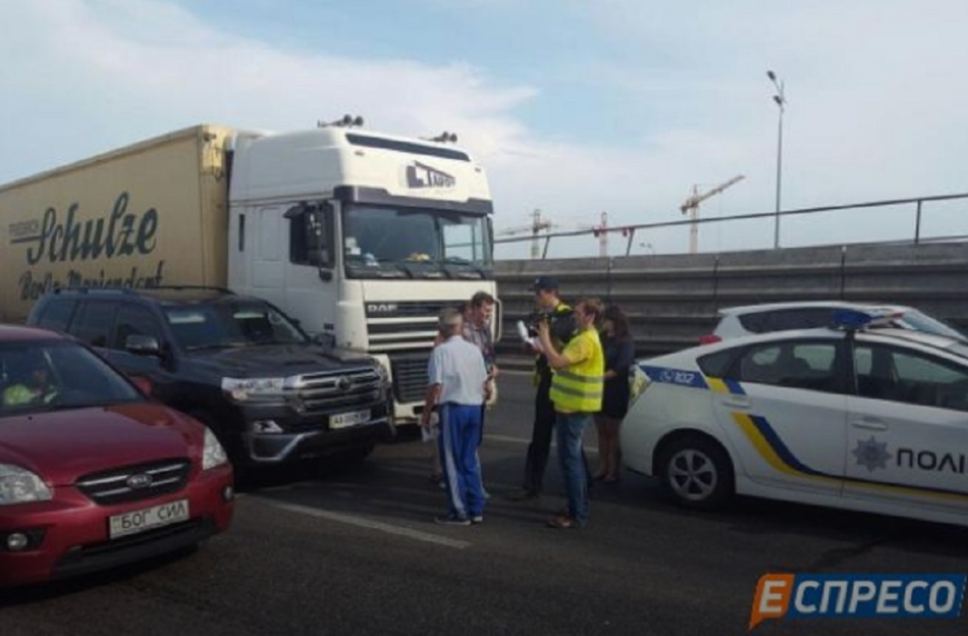 Екс-мер Києва Омельченко потрапив у ДТП з фурою. Фура рухалася на третій смузі по Південному мосту, а авто Омельченка – на другій. Дві машини одночасно вирішили перелаштуватися і притерлися.