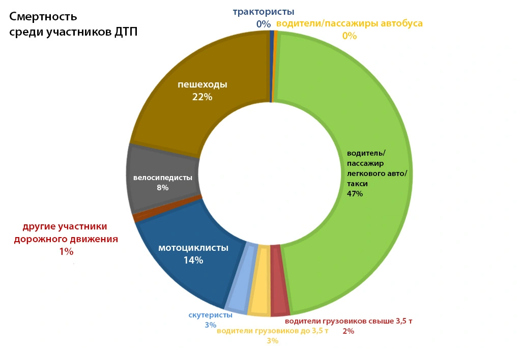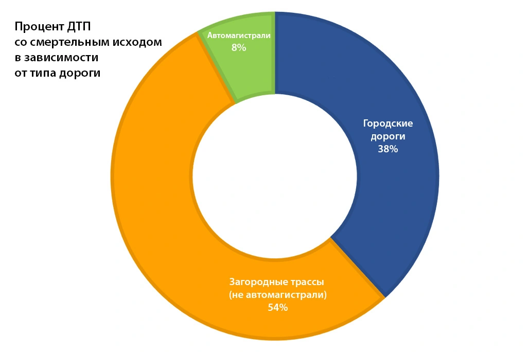 Также опубликована статистика по зависимости ДТП со смертельным исходом от типа дороги и вида траспортного средства.