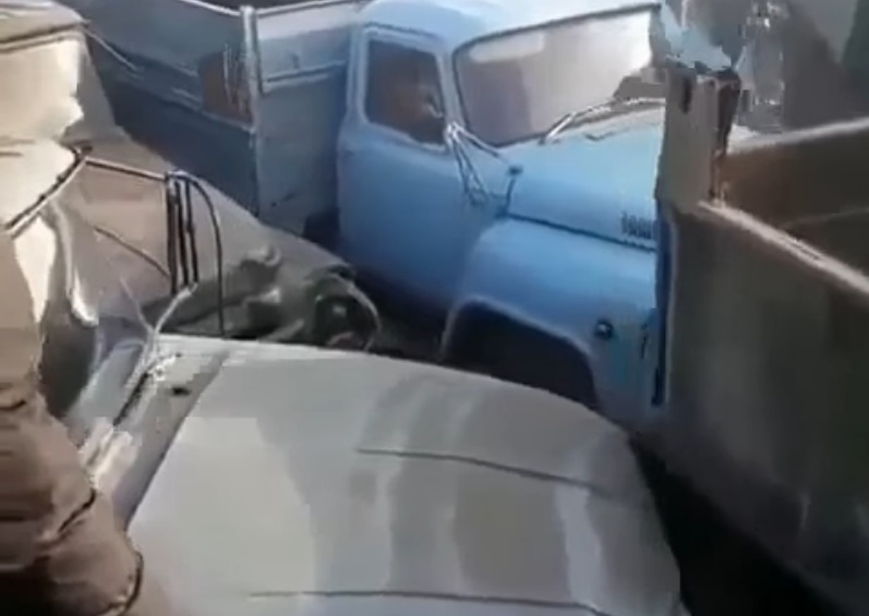 В итоге получились такие себе бои без правил. Только в них участвовали не водители – и это хорошо, а их стальные кони. Старые грузовики советских времен – ГАЗ-53, ЗИЛ-130, КамАЗ-5511 начали мериться силами, у кого сталь крепче. В результате многим помяли передние крылья, капоты, повыбивали фары…