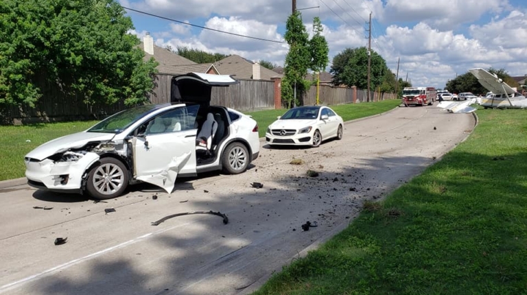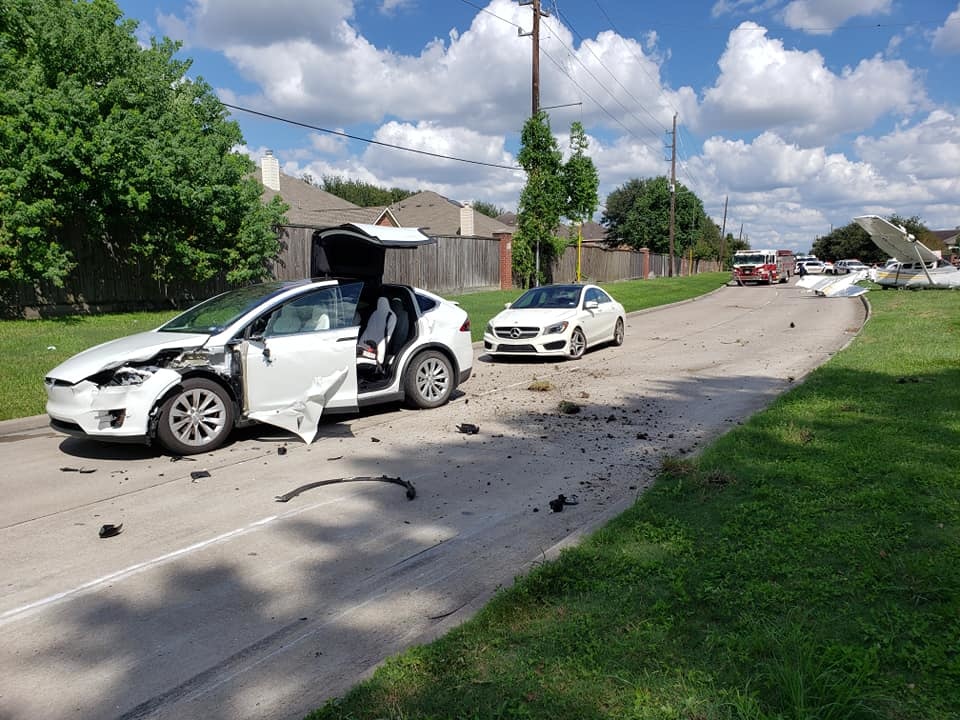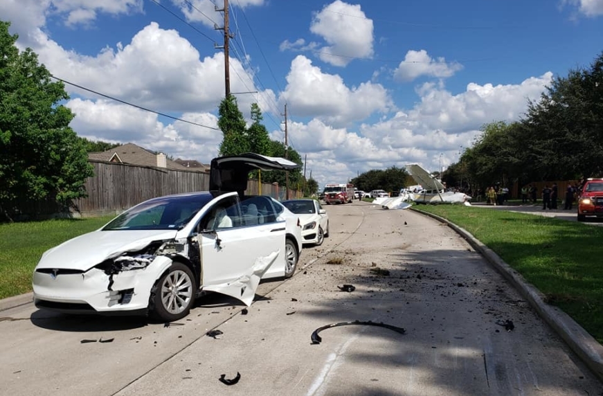 Во время приземления Сессна задела высоковольтные провода, а затем рухнула на шоссе, задев два авто – Tesla Model X и Toyota Corolla. Водитель Короллы свернул с дороги, чтобы уйти от удара, но самолет все равно зацепил машину крылом.